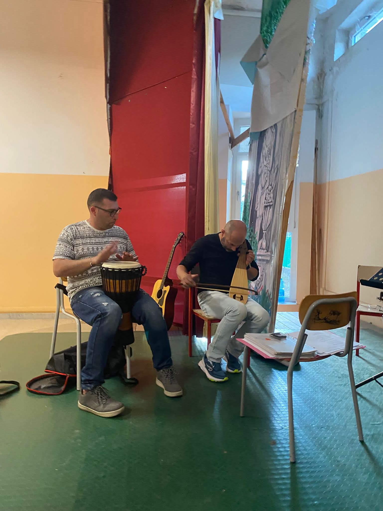 E allora ecco come lira e jembe-bongo incontrano chitarra acustica e fisarmonica in una reinterpretazione dei canti popolari arbereshe mentre abiti e inflessioni diversi danno nuova linfa allevtradizioni locali, costruendo ponti di radici tra i nostri paesi in grado di spingersi fino in Francia ancora una volta.