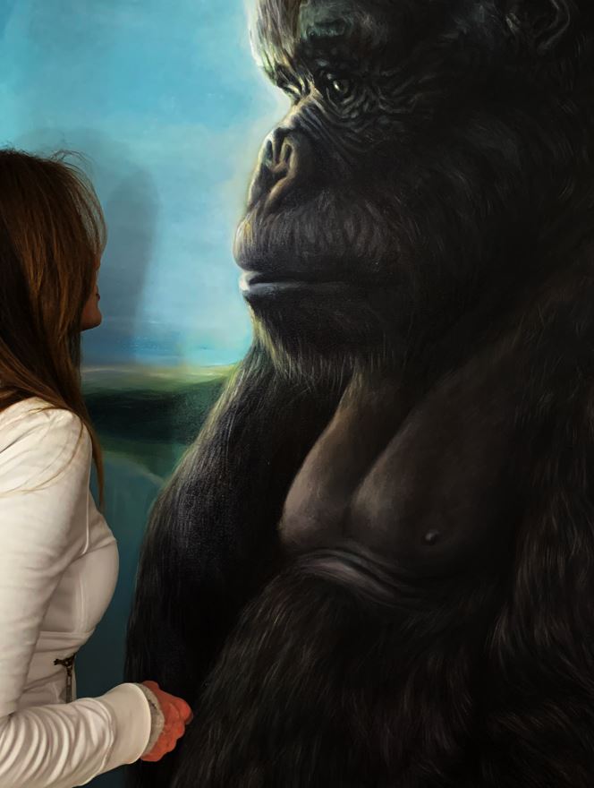 Patrizia Lo Feudo, rinomata e pluripremiata artista calabrese, celebra nella sua opera uno dei leggendari giganti della storia del Cinema, “King Kong”, lo stesso gorilla di cui è padre il Maestro degli effetti speciali, vincitore di 3 Premi Oscar, Carlo Rambaldi.