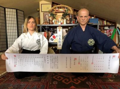 E’ un grande orgoglio per me commenta il Maestro, tutti i sacrifici che ho fatto fino ad ora sono stati ampiamente ripagati, ed essendo questa scuola una delle migliori nel campo mondiale delle Arti Marziali devo continuare a portare avanti con abnegazione questa disciplina. Un grazie doveroso lo devo a mia figlia Cristina che mi ha fatto da uke (sparring). Cristina è riuscita a superare l’esame di 3° Dan.