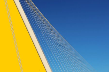 Linee e colori caratterizzano questo scatto. Giallo e blu, due colori diversi, contrapposti, che vengono filtrati e uniti dalle linee del ponte, che convergono verso l’alto per aumentare il senso di UNIONE. Il ponte riflette esattamente questo valore, l’unione di opposti, luoghi, persone, culture diverse e a volte anche opposti, proprio come questi colori. Distrugge le distanze, e solo l’architettura è in grado di esprimere fisicamente ció.