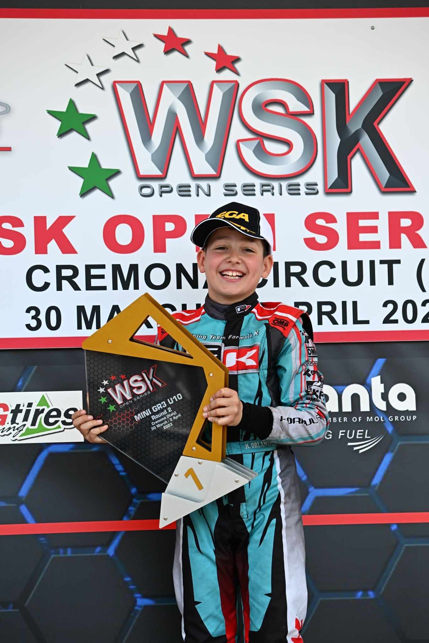 1° classificato WSK OPEN SERIES RND2 GR3 Under10 a Cremona Circuit 2023. E’ stato il più giovane pilota calabrese a vincere un Wsk nella categoria Gr3 under 10.