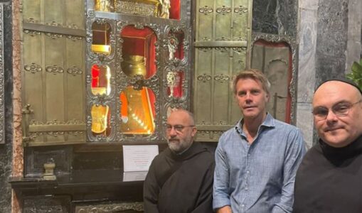 “Una visita inaspettata in forma privata. E al tempo stesso storica. Il principe Emanuele Filiberto di Savoia si è recato in Santuario a Paola. Come già fece l’ultimo re d’Italia Umberto di Savoia, ha venerato le ossa e le reliquie di san Francesco.”