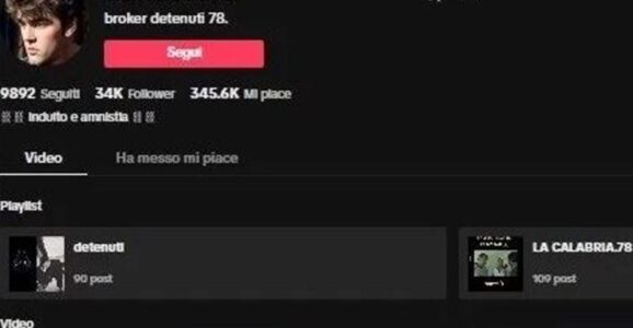 “Sono solo alcuni dei video che compaiono su “broker detenuti.78”, un profilo pubblico su TikTok che conta oltre 34 mila follower e circa 345 mila interazioni. Il canale, anonimo, presenta un’unica scritta sotto la foto profilo: «indulto e amnistia» contornato da emoticon delle catene.”