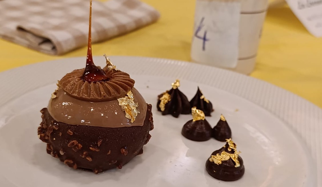 A trionfare nella loro categoria sono stati i due giovani fratelli Falsetta, Federica e Pierluigi, con il loro “Rochèr Prezioso”; una sfera di semifreddo al Nerone puro, con cuore alla nocciola, glassa specchio al cioccolato al latte, mulinello goloso e stalattite di nocciola caramello.
