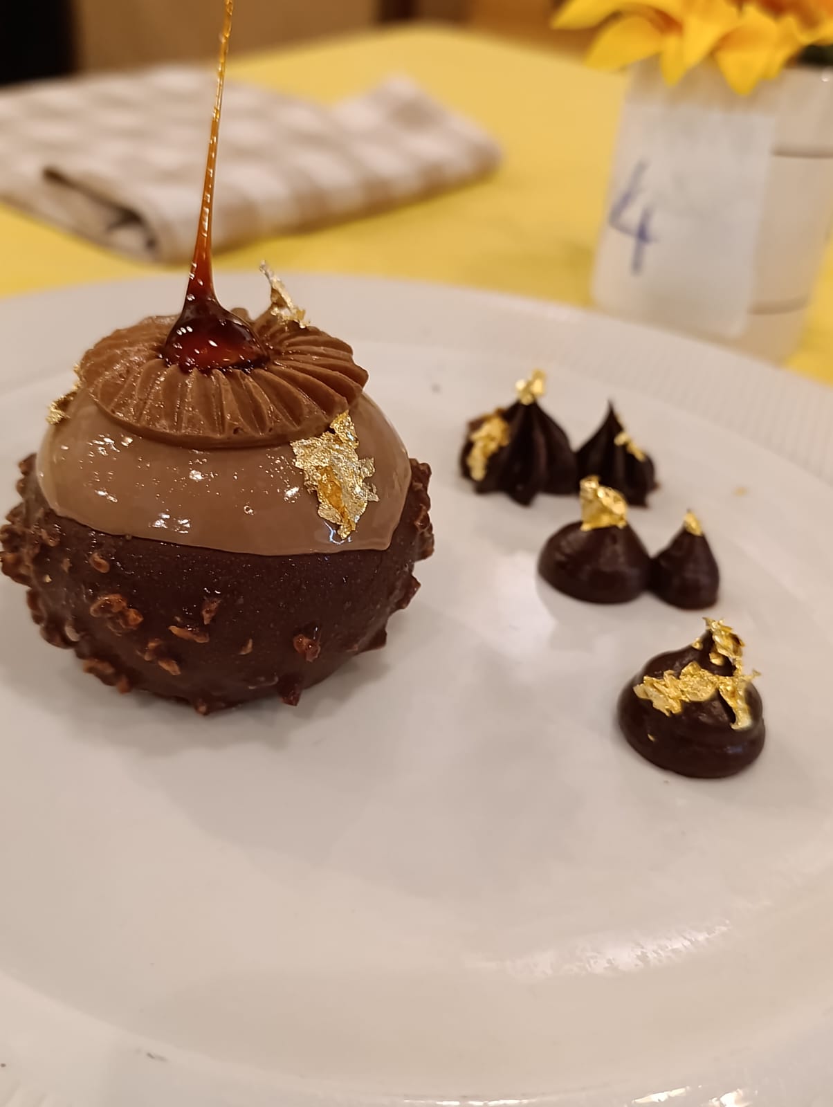 “Il dessert é un connubio tra il cioccolato e la nocciola che insieme celebrano l’amore e che rappresenta allo stesso tempo noi, l’amore tra un fratello ed una sorella.”
