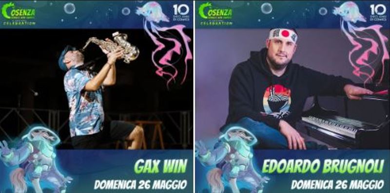 Il pianista Edoardo Brugnoli ed il sassofonista Gax Win suoneranno presso la decima edizione del Cosenza Comics 2024