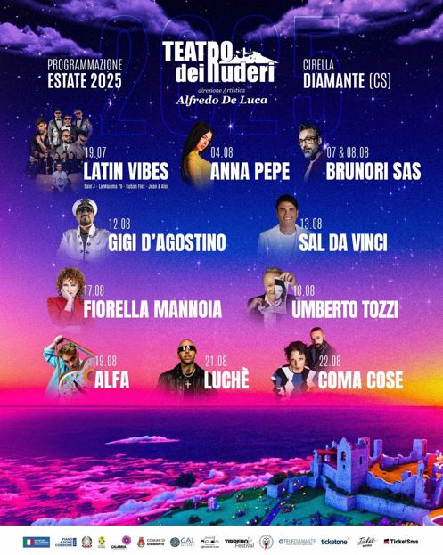 Il calendario 2025 si arricchisce di grandi nomi del panorama musicale italiano e internazionale, con presenze già confermate come Alfa, Luchè, Anna Pepe, Gigi D’Agostino, Fiorella Mannoia, Sal Da Vinci, Coma Cose, l’appuntamento internazionale Latin Vibes dedicato al mondo latino e l’intramontabile Umberto Tozzi.