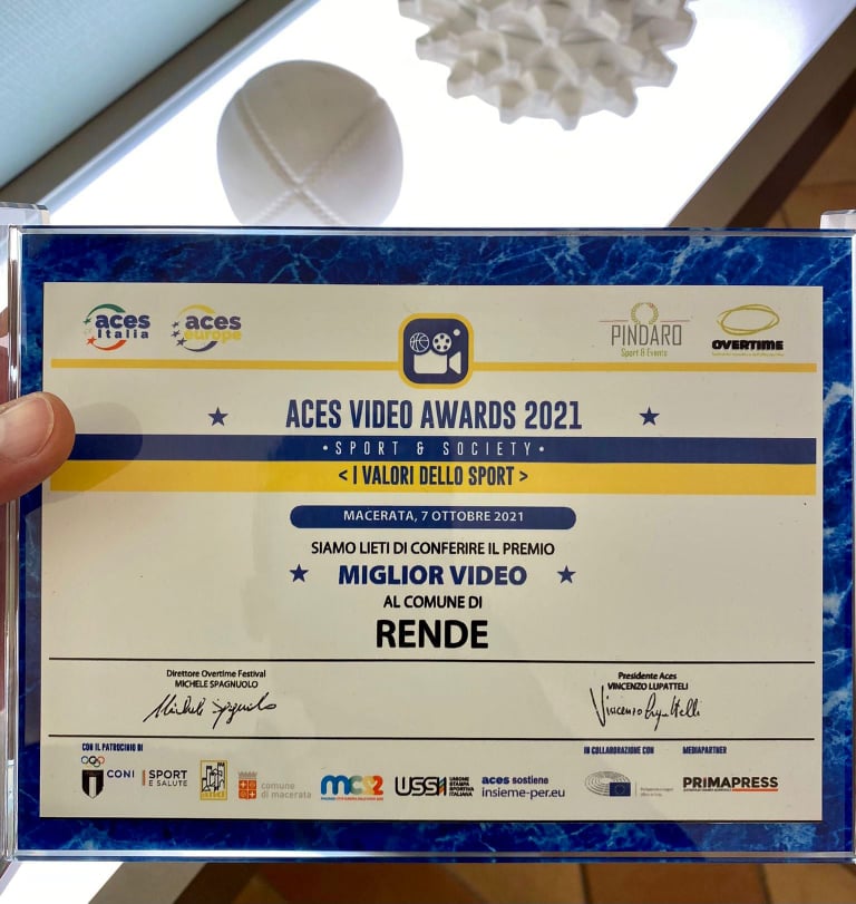 Il video del cosentino Gianluca Gargano, realizzato per la candidatura del comune di Rende a città europea dello sport 2023, è stato premiato come miglior video agli “Aces Video Awards 2021” che si sono tenuti a Macerata.