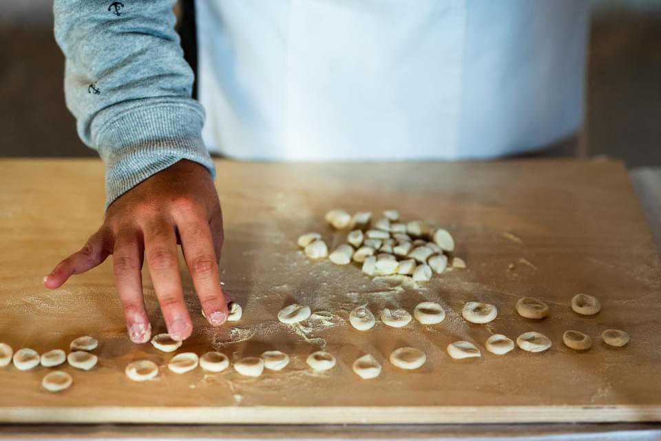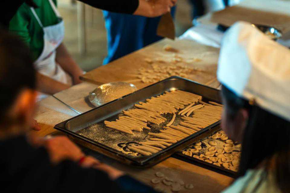 Il pranzo al V’Incanto è stata un’altra prova generale nell’attesa, un modo di continuare a fare pratica in un vero ristorante, cucinare davanti ai clienti, muoversi tra i tavoli e vivere un’esperienza lavorativa. Un piccolo tirocinio, insomma, oltre la sede de La Terra di Piero dove, sotto la guida e la cura delle sapienti mani di Tiziana – responsabile del progetto – e delle volontarie schierate in prima linea (domenica accanto ai ragazzi Giulia ed Egidia, esperte del settore), la brigata di cucina ha imparato, giorno dopo giorno, a impastare maccheroni, lagane, tagliolini, fusilli e cavatelli.