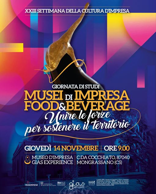 Il prossimo 14 novembre giornata di studi “Musei di impresa del food e del beverage – Unire le forze per sostenere il territorio”, nella sede del Museo d’Impresa Gias Experience a Mongrassano (Cosenza)