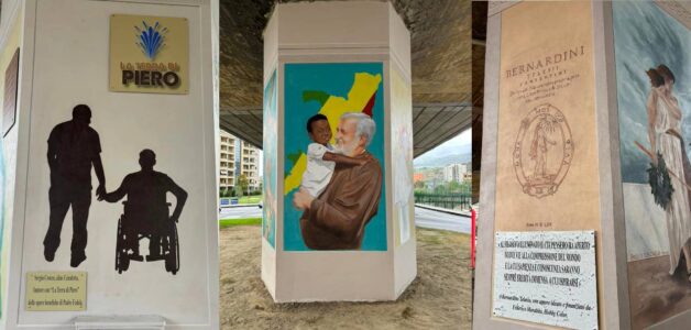 L’artista Paolo Viscardi, autore delle opere ha spiegato la tecnica adoperata. “Non si tratta di semplici murales, che non sono da considerare neanche street art, perché quest’ultima solitamente è eseguita tramite vernici acricliche nebulizzate con bombolette spray. Abbiamo, invece emulato– ha sottolineato Viscardi – le tecniche tardo rinascimentali di cui fanno parte anche le decorazioni dei piloni, con finti stucchi che incastonano i dipinti, non decontestualizzando la natura stessa del pilone.