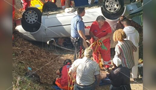 La vettura è andata a finire su una stradina secondaria. Sul posto i sanitari del Suem 118 e i carabinieri della locale stazione