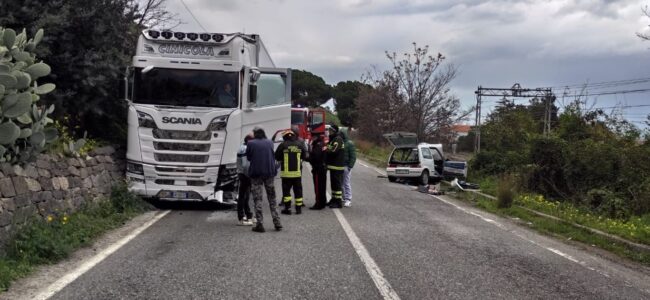 “Per cause ancora in via d’accertamento, una Fiat 500 è andata in collisione con un Tir.