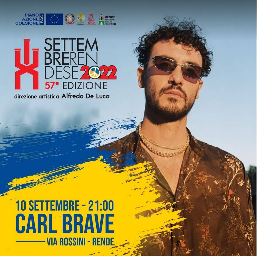 L’amministrazione comunale di Rende e il direttore artistico Alfredo De Luca, infatti, per il primo giorno di questa 57esima edizione (lo ricordiamo, una delle manifestazioni più longeve della Calabria) ha voluto uno dei personaggi più amati dai giovani del momento: sul palco di via Rossini, ad Ingresso Gratuito, il 10 settembre alle ore 21, salirà infatti Carl Brave per un concerto attesissimo e che sicuramente richiamerà il pubblico dei grandissimi eventi.