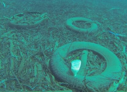 I fondali dell’area protetta ricoperti di rifiuti. In tre giorni di pulizia individuati o recuperati oltre 100 pneumatici.