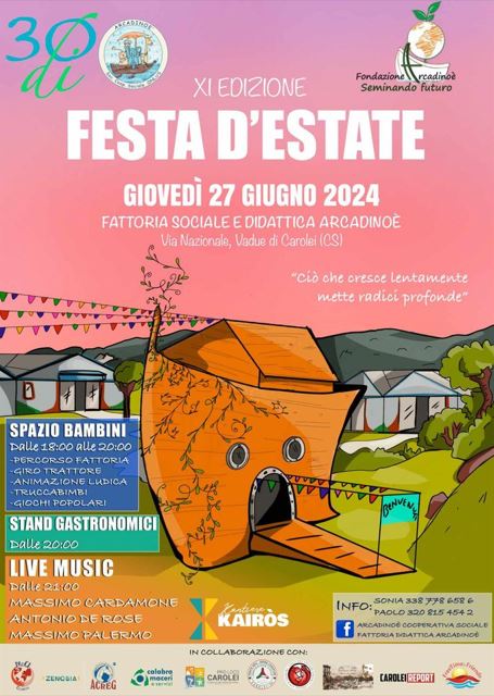 L’appuntamento è giovedì 27 giugno presso la fattoria sociale e didattica Arcadinoè