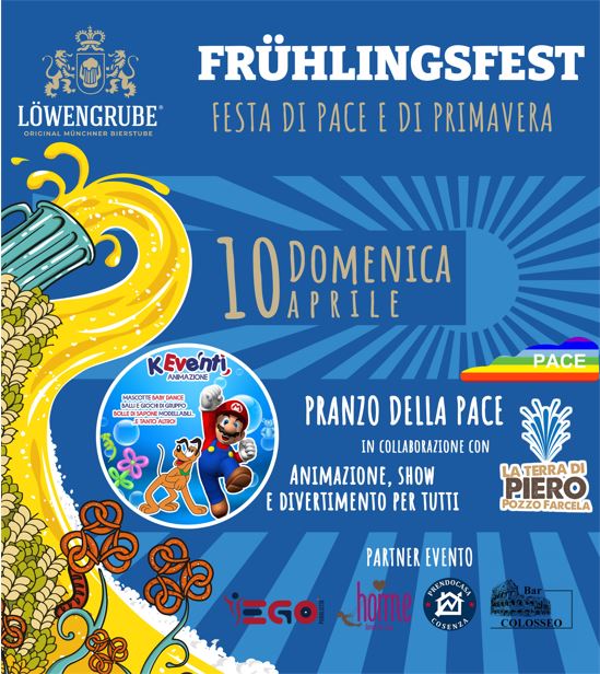 Sì terrĂ domenica 10 aprile, in collaborazione con “La Terra di Piero” e altre associazioni attive sul territorio come “Home” e “Prendo Casa”, la Festa di Pace e di Primavera da Löwengrube, a Quattromiglia di Rende in Piazza Santo Sergio (vicino alla biblioteca civica)