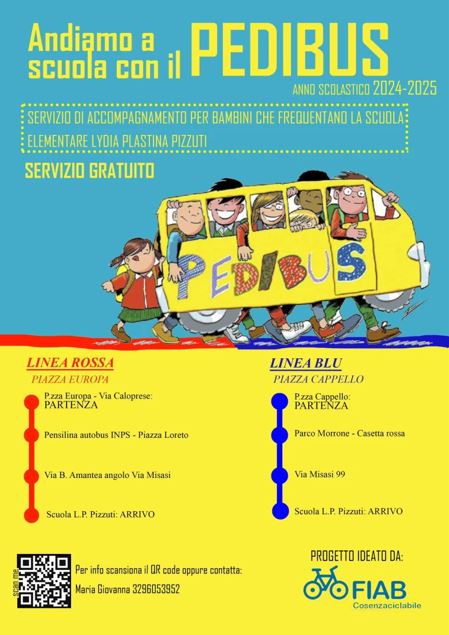 Il progetto ambientalista di comunità “Pedibus” rappresenta il modo più sicuro, ecologico e divertente per andare a scuola e per costruire una città a misura di famiglia. E’ un progetto consolidato in molte parti del mondo e con esempi virtuosi anche nel nostro Paese e che ora l’Amministrazione comunale di Cosenza ha inteso sposare per far partire questa sperimentazione, per il momento destinata alle famiglie dei bambini iscritti alla scuola primaria di Via Roma, Lidia Plastina Pizzuti.