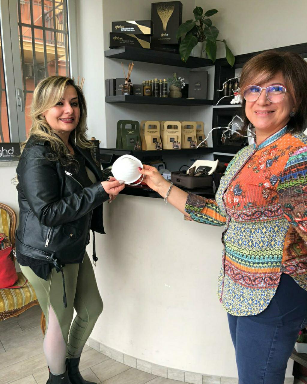 La stylist Natascia Callegaro omaggia le clienti del suo negozio con le mascherine P02