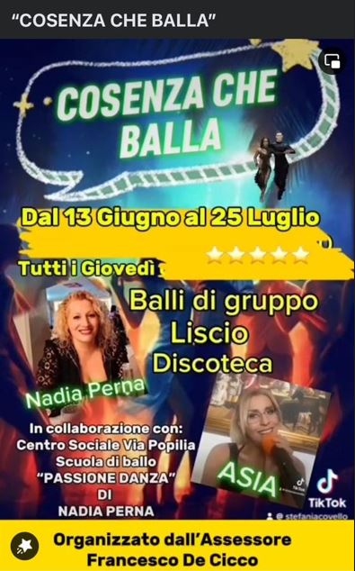 “Cosenza cha bella” ogni giovedì , dal 13 Giugno alle ore 21 e tutti i giovedì di Luglio. A seguire tantissime iniziative.