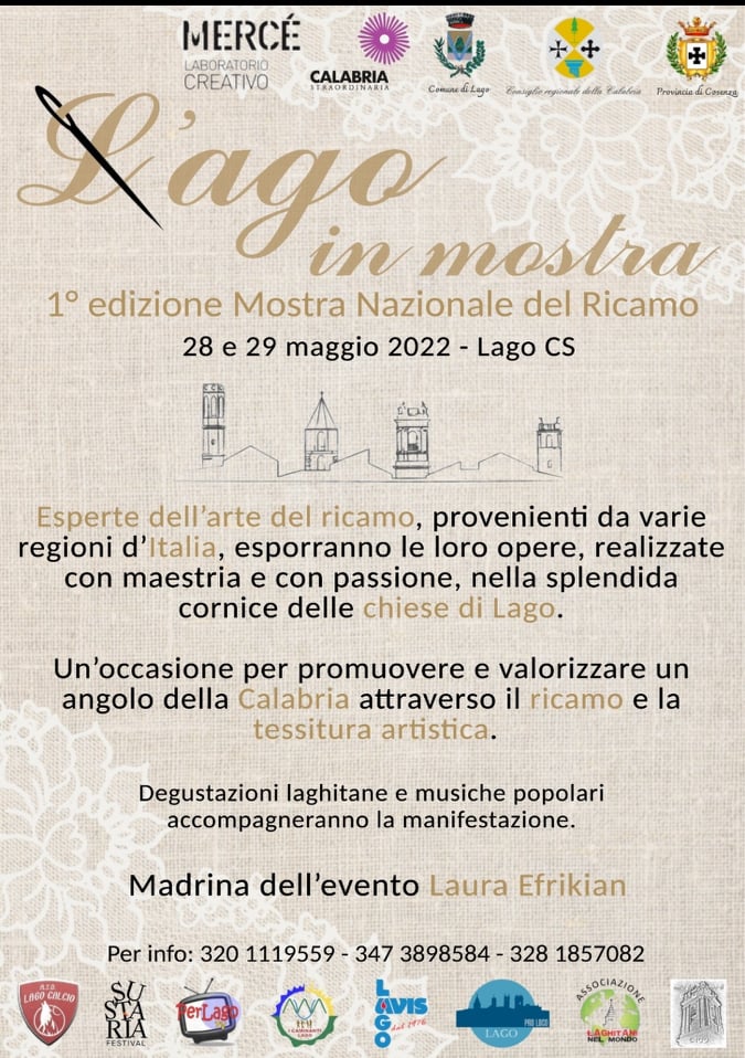“L’Ago in mostra”, manifestazione incentrata sulla tradizione del ricamo, arte manifatturiera preziosa e strabiliante, è stata organizzata dal Comune di Lago, in collaborazione con “Mercé Laboratorio creativo” e con le associazioni presenti sul territorio.