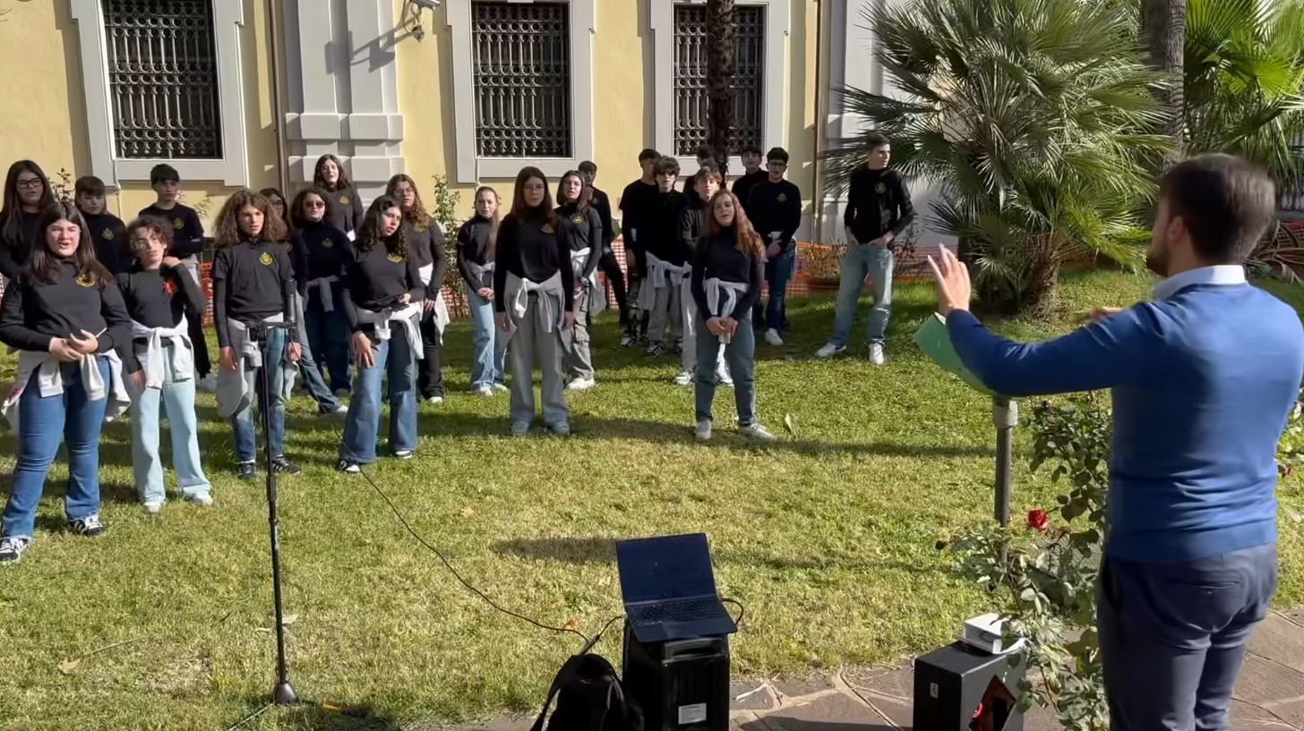 Dal cortile delle scuole Misasi si alza un coro unanime: “Heal the world. Make it a better place for you and for me!” – “Guarisci il mondo. Rendilo un posto migliore per te e per me!”