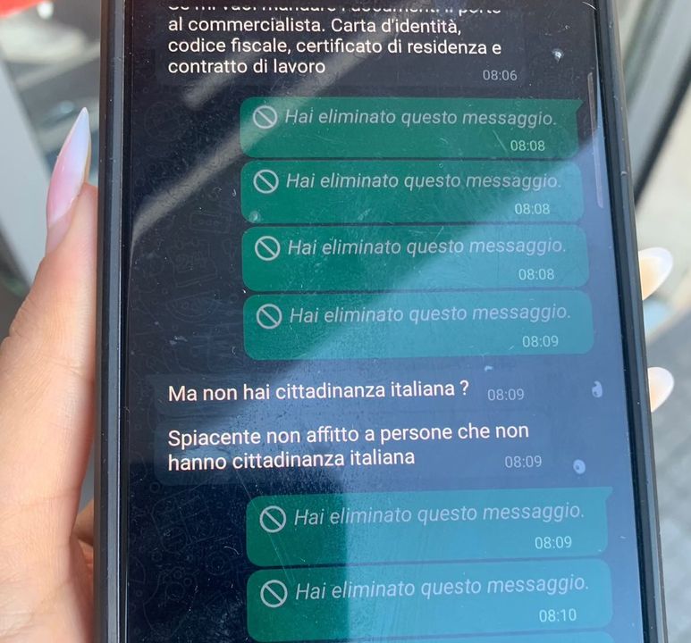 Ma prima di andare, tutto cambia. Alla richiesta dei documenti da parte del proprietario, necessari per stipulare il contratto, rispondiamo inviando tutto quanto, come da procedura. Peccato che qui vede che il ragazzo non è un cittadino italiano e cambia idea, dicendo “spiacente non affitto a persone che non hanno cittadinanza italiana“…!