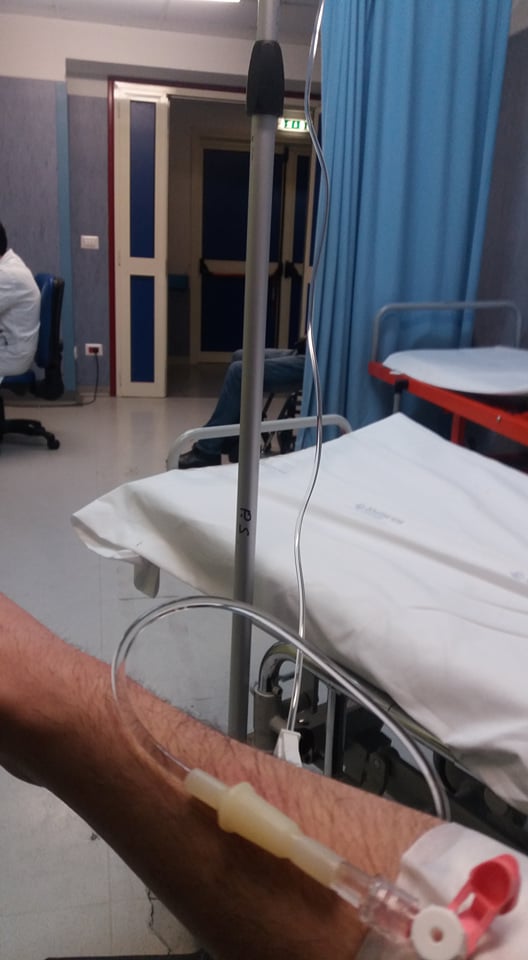 Lasciando stare che sono stato poco bene a causa dell’influenza, ma vedete quel signore dietro la tendina blu seduto? Ecco… era appena stato portato nella mia stessa stanza dai signori del 118. Una volta arrivati i signori del 118 dissero: “Abbiamo questo paziente in grave stato, ha assunto vari farmaci”