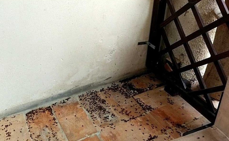 Indescrivibile la situazione con tappeti e tappeti di blatte che circolano e entrano nelle case, nei letti, nelle credenze. Tutti gli abitanti della zona si stanno difendendo come possono, decine di bombolette spruzzate, pacchi di soluzioni in polvere per arginare l’invasione, ma le blatte sono ovunque, vive e morte.