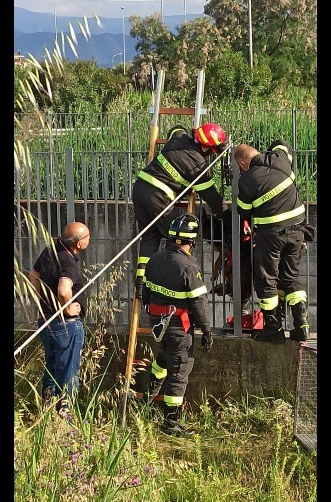 “In zona Sibari, è stata avvistata una cagnolina, di razza pastore tedesco, bloccata all’interno di un canale d’acqua.