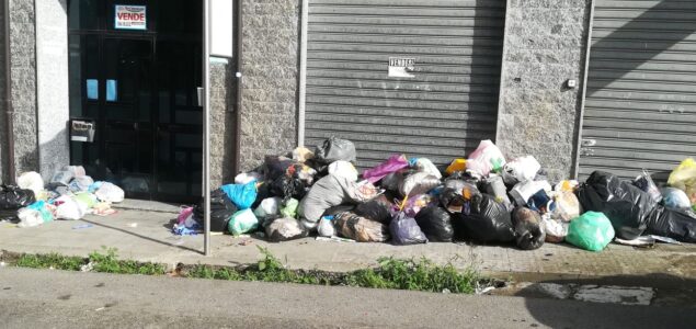 La spazzatura è così a ridosso del portone di ingresso del civico 11 che se si lascia il portone aperto si rischia che i topi entrino nello stabile.