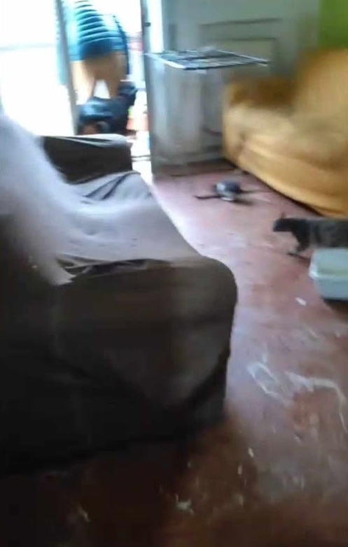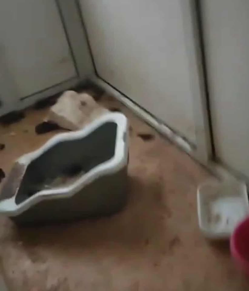 L’inquilina non lascia entrare nessuno, non spiega, non si pronuncia .. è sempre fuori per lavoro. Di nostra conoscenza sappiamo che ci sono all’interno 9 gatti adulti, 2 piccoli e un cane di circa 25 kg, visibili ogni tanto dal balcone e, da cui, spesso e volentieri cadono giù, per strada, anche alcuni gatti.