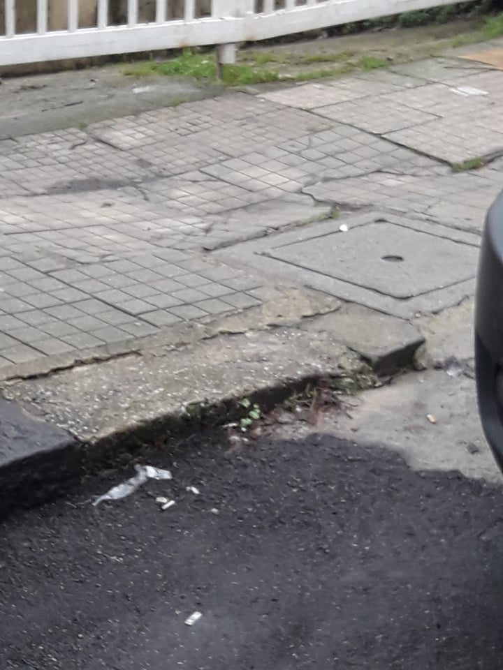 Oltretutto è completamente disconnesso e pieno di buche. Una carrozzina ci si incastra ed é difficile da trasportare…o peggio, il povero malcapitato, già costretto a vivere una vita con grosse difficoltà, rischia di ritrovarsi ribaltato e scaraventato per terra con tutta la sedia a rotelle.