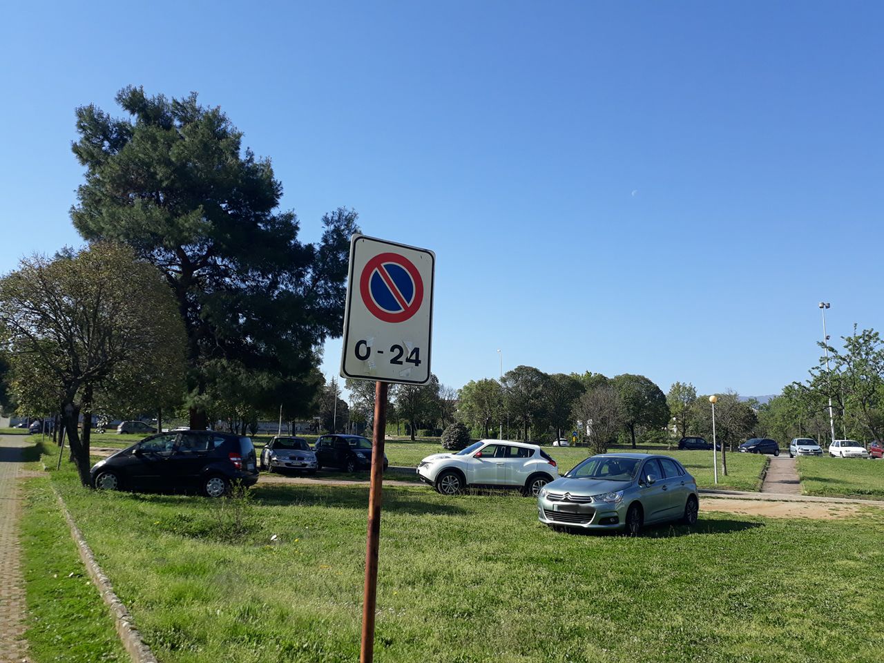 La maleducazione é arrivata a livelli tali che parcheggiano sotto di essi e in alcuni punto hanno ormai definitivamente distrutto il manto erboso.