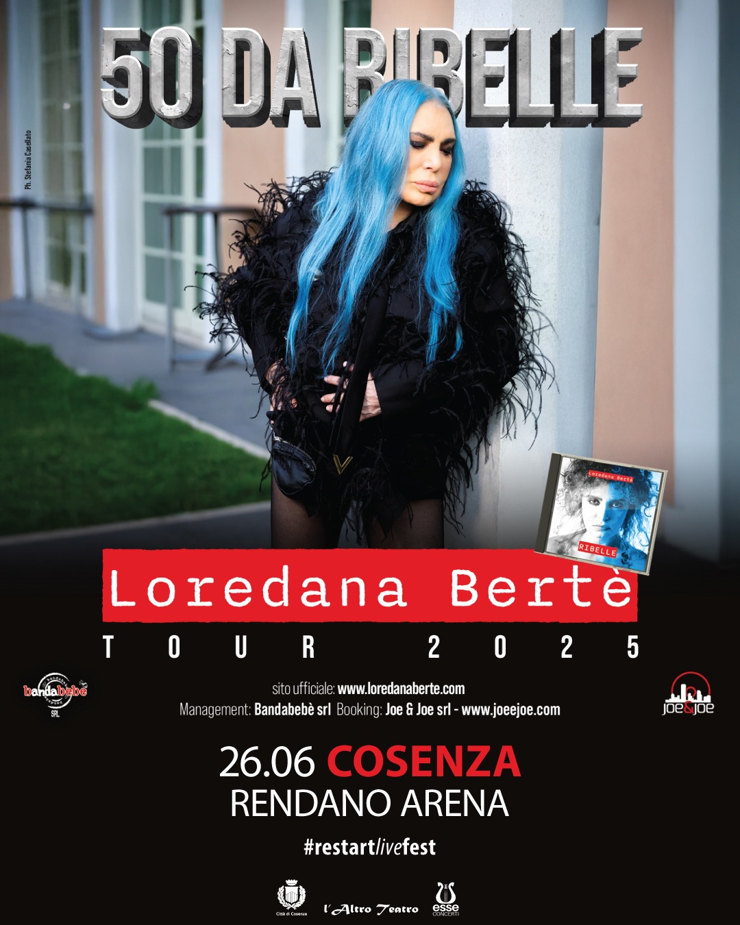 La regina incontrastata del rock italiano, Loredana Bertè, torna live per celebrare cinquant’anni di carriera. Tra le tappe del suo nuovo tour “50 DA RIBELLE”, ci sarà anche Cosenza: la cantante calabrese si esibirà il 26 giugno 2025 in piazza XV Marzo. Rendano Arena #Restartlivefest, la sezione estiva della Rassegna L’Altro Teatro, curata da Gianluigi Fabiano e Giuseppe Citrigno, e patrocinata dal Comune di Cosenza, è pronta ad accogliere Loredana Bertè e la sua inseparabile e potente band, la Bandabertè, insieme a tante altre sorprese.