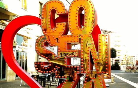 “C’è una nuova installazione artistica a Cosenza, sistemata nell’ultimo tratto di Corso Mazzini, quello prospiciente Piazza Bilotti. Nelle intenzioni dell’amministrazione comunale, che ne ha disposto la realizzazione, la struttura, illuminata di notte e che riproduce il nome della città , è un simbolo di amore verso i cittadini e di accoglienza per i visitatori.”