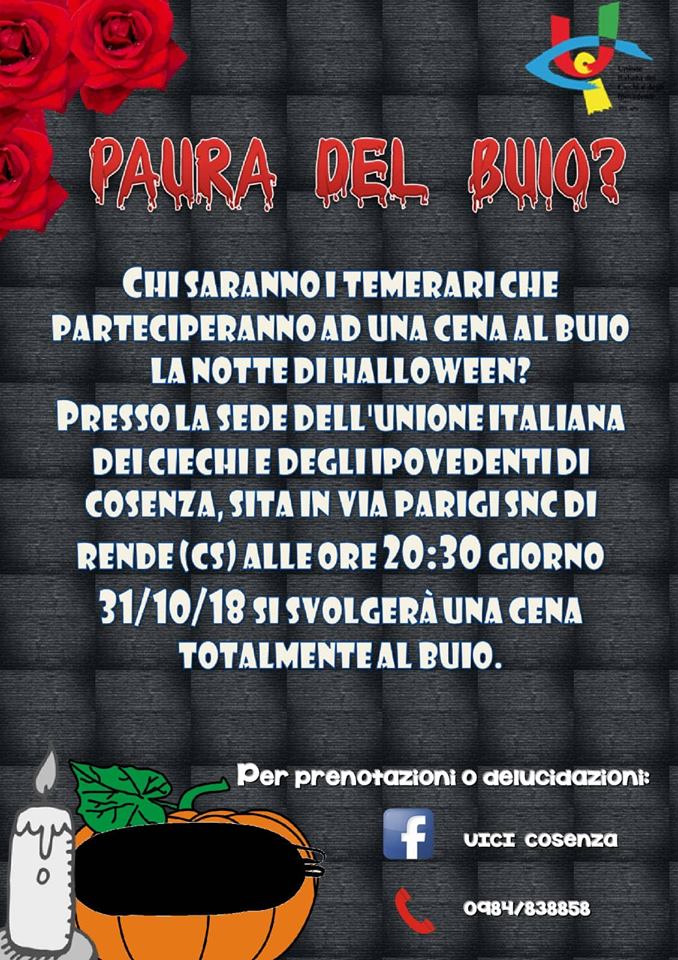 L’Unione Italiana Ciechi Cosenza organizza la cena al buio di Halloween