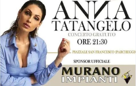 Per il 30 Aprile già grande è l’attesa per il concerto gratuito di Anna Tatangelo (main sponsor Murano Impianti) che si terrà presso il parcheggio comunale (Piazzale San Francesco ndr) a partire dalle ore 21.30.