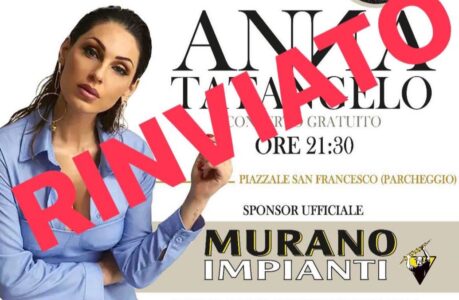 “L’associazione Re-Genesis Thebae, in qualità di organizzatore dei Festeggiamenti Civili in onore di San Francesco da Paola, comunica il rinvio a sabato prossimo del concerto di Anna Tatangelo previsto per domenica 30 aprile a Luzzi.