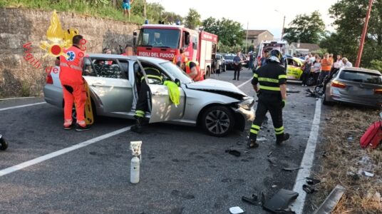 “Una squadra dei vigili del fuoco intervenuta nei pressi di contrada Muri, nel comune di Luzzi, per un incidente stradale causato dallo scontro tra auto. Uno dei conducenti è stato estratto dalle lamiere. Altro incidente questa sera sulla SS18 nel comune di Longobardi. Due le vetture coinvolte con altrettanti feriti.”