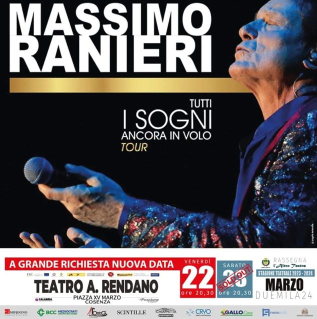 I biglietti sono andati a ruba in poche settimane dopo l’annuncio dello show in Calabria. Lo spettacolo si veste di una nuova veste scenografica, l’organizzazione generale del tour è di Marco De Antoniis: sul palco con Massimo Ranieri ci sarà la band composta da Seby Burgio al pianoforte, Giovanna Perna alle voci e alle tastiere, Tony Puja e Andrea Pistilli alle chitarre, Valentina Pinto al violino e alle voci, Max Filosi e Cristiana Polegri al sax.