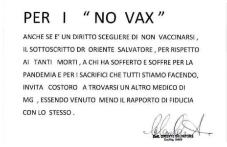 Oriente è consapevole di aver preso una decisione che farà, anzi sta già facendo discutere, ma non gli importa perché mette al centro dalla sua attività di medico nella salvaguardia della salute dei suoi assistiti ed è quella che vuole tutelare.”