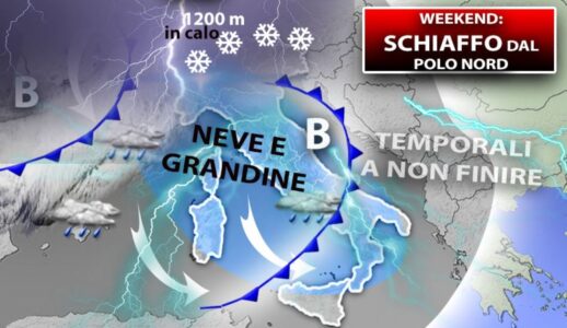 “Nel prossimo WEEKEND l’Italia si troverà nuovamente in rotta di collisione con una nuova ondata di maltempo, questa volta in arrivo direttamente dal POLO NORD.