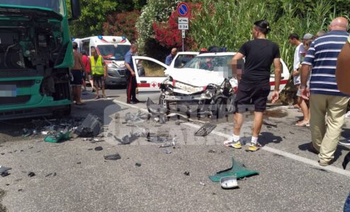 L’incidente attorno alle 14 in località Tonnara. Cinque le persone coinvolte, la più grave trasportata in elisoccorso