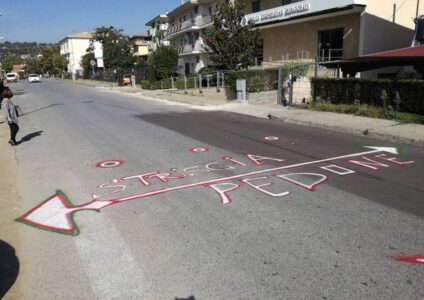 Roberto Corsi , con l’utilizzo di bombolette spray, risolve la questione strisce pedonali a modo suo, rischiando peraltro di ricevere sanzioni pecuniarie