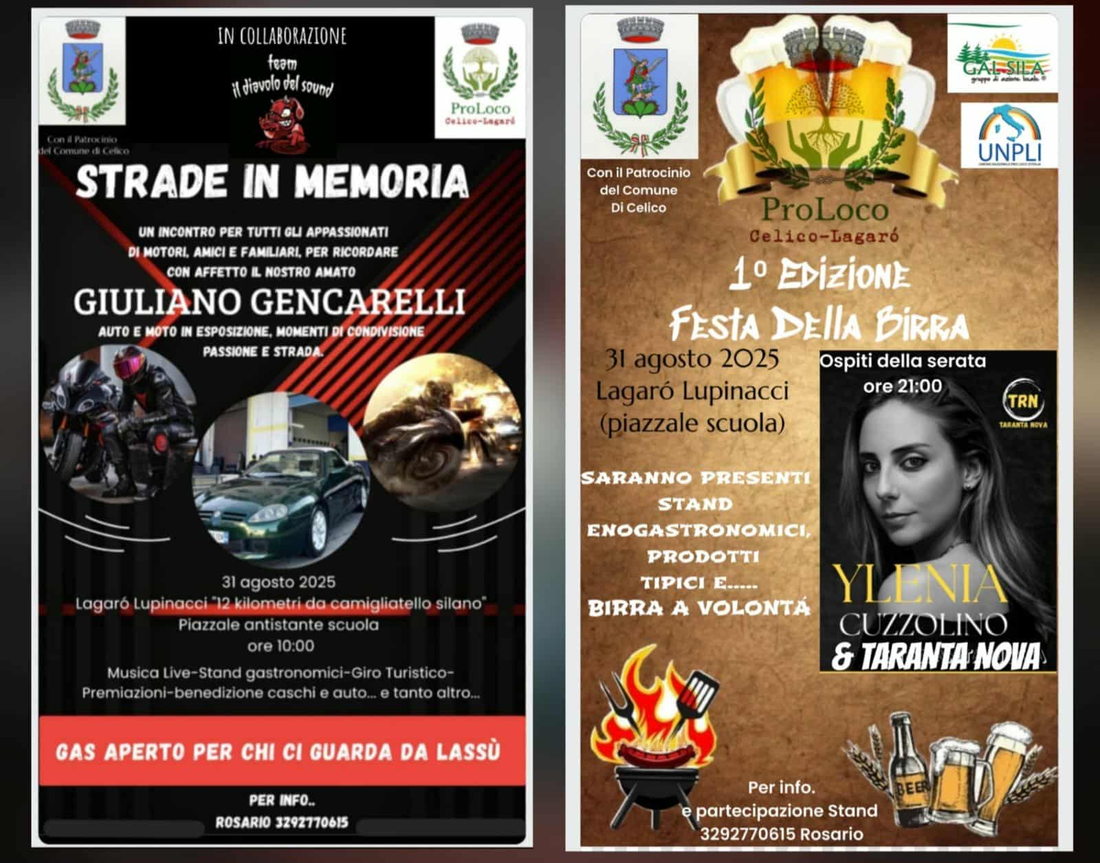 “Un evento unico nel cuore della Sila organizzato dalla Pro Loco Lagaró-Celico domenica 31 Agosto 2025 a Lagaró Lupinacci, a soli 12 km da Camigliatello Silano, si trasformerà in un punto di incontro per appassionati di motori, amanti della buona birra e cultori della musica popolare.