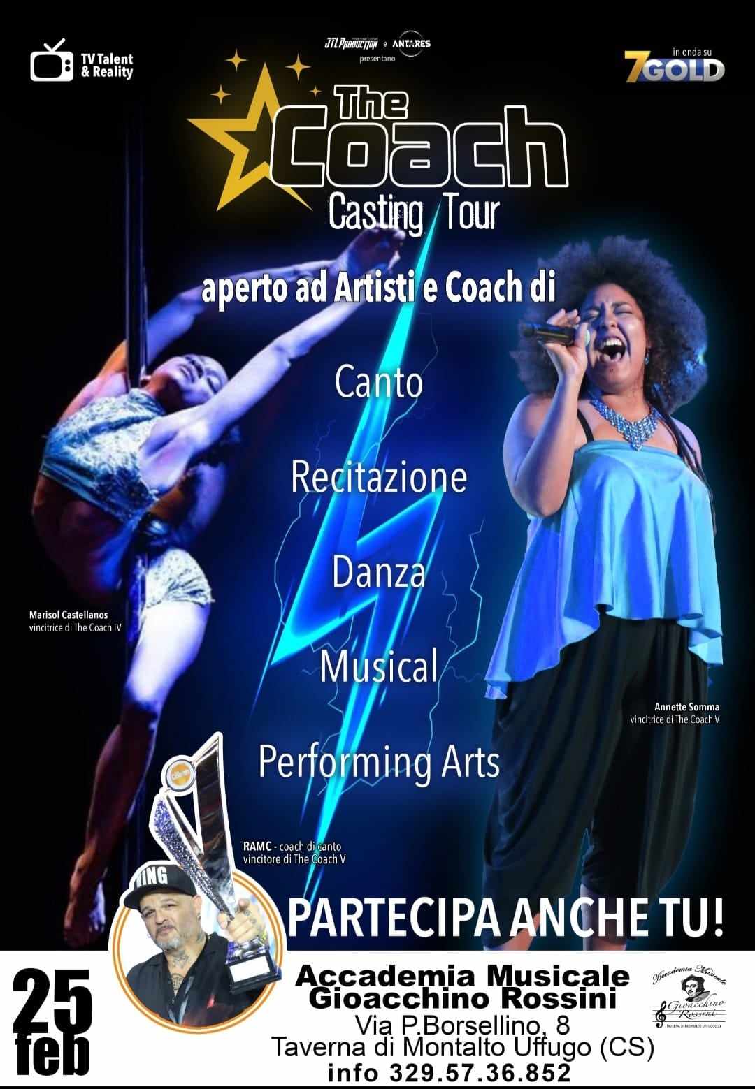 Questa domenica, 25 febbraio 2024, l’Accademia Musicale “G.Rossini” Aps di Taverna di Montalto Uffugo (Cs), sotto la direzione della Signora Meringolo Maria Francesca, ospiterà il casting del prestigioso programma Televisivo “The Coach”.