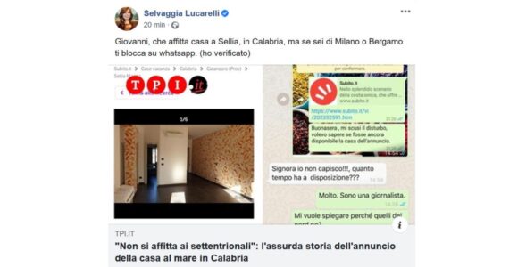 “Non si affitta ai settentrionali”: l’assurda storia dell’annuncio della casa al mare in Calabria