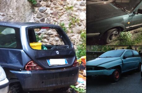 Una Y10 all’inizio di corso Telesio è ormai un simbolo di incuria e abbandono. I mezzi in disuso diventano ricettacolo di immondizia