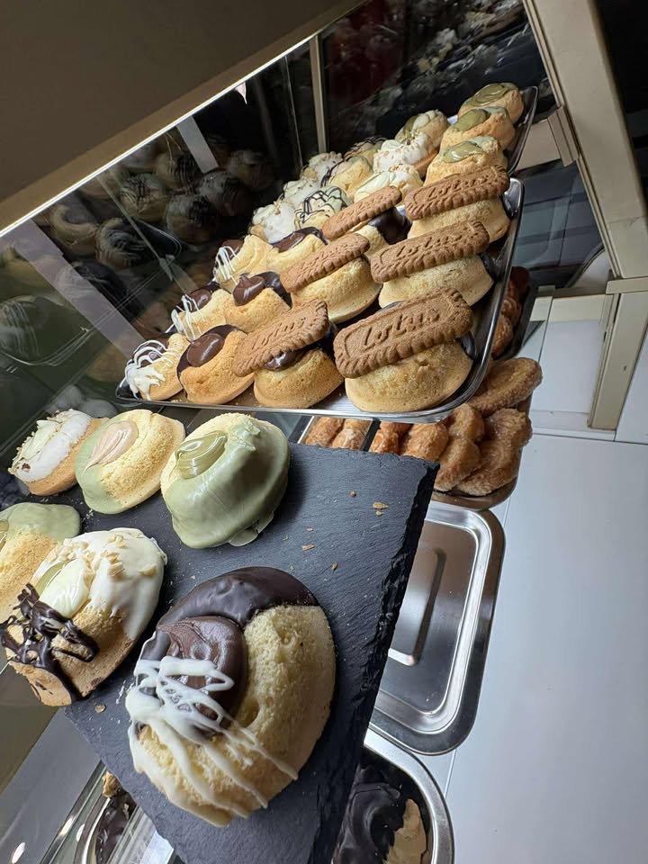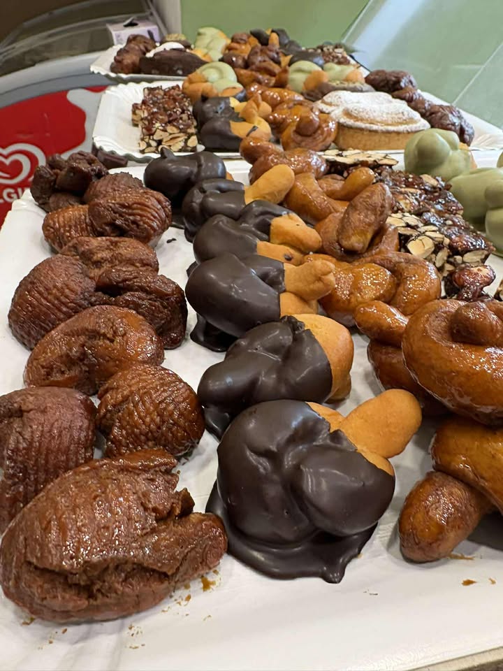 Si va dal classico panzerotto, passando per le pizze rustiche e le immancabili polpette, alla pizzetta e all’hot dog rivisto e modificato con aggiunta di verdure e patatine, per arrivare poi ad un’infinità di dolci di ogni tipo, secco e con creme, fritti e al forno. Non mancano pane, panini, taralli e frese.